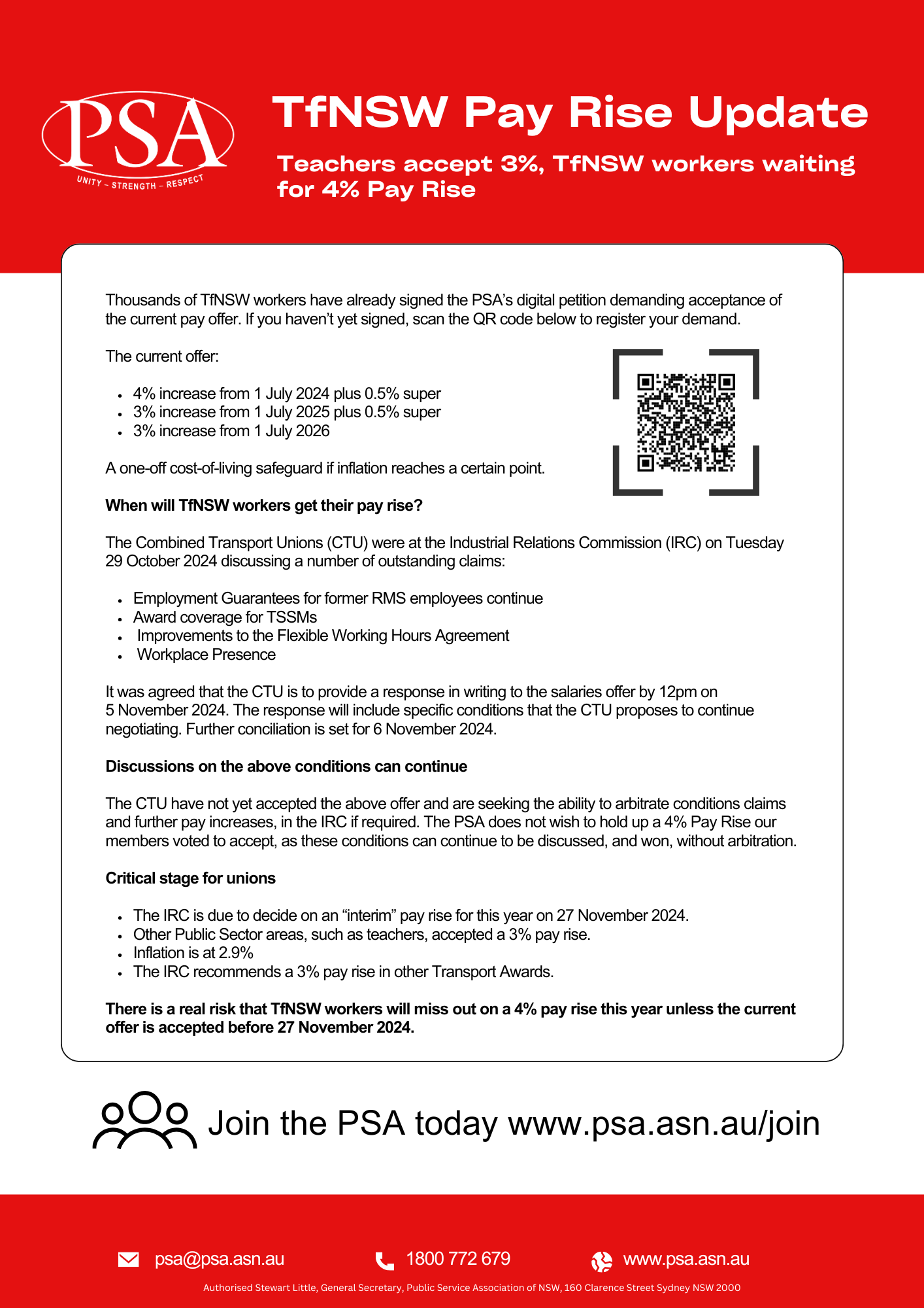 TfNSW 2 pay rise A5 flyer - Public Service Association