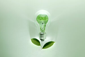 Green Energy Concepts. Wireless Light Bulb with Green Leaf as Sign of Light On. Carbon Neutral and Emission ,ESG for Clean Energy. Sustainable Resources, Renewable and Environmental Care - Public Service Association