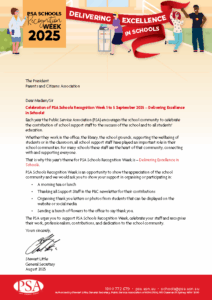 Our theme for the 2025 PSA Schools Recognition Week is Delivering Excellence in Schools. And that is exactly what our members do: schools in our state simply could not run without the army of PSA members working in their offices, grounds and classrooms.