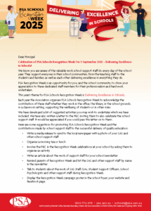 PSA Schools Recognition Week gives our school communities the chance to express appreciation for your excellence in the workplace. We have had substantial wins regarding your pay and permanency, the PSA is still working with the Government to ensure all our members are safe at work and taking action regarding the many industrial challenges our members face day to day. We are also pushing for better professional development for you, the essential workers who keep our schools running.